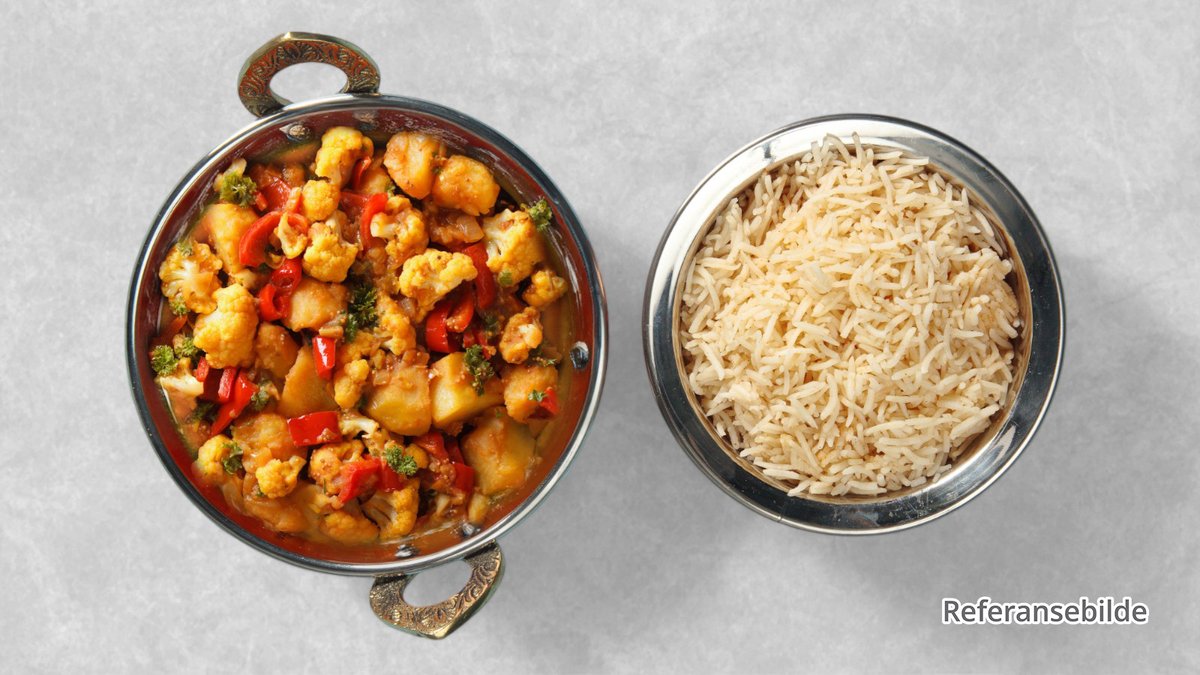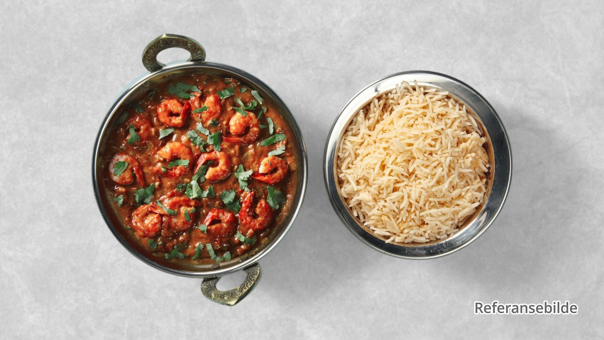 Kongereke putret med pommes frites løk, tomater ingefær og krydder. Smaksatt med hvitløkssaus, rømme, friske tomater og fløte. Serveres varm med grønn koriander på toppen.