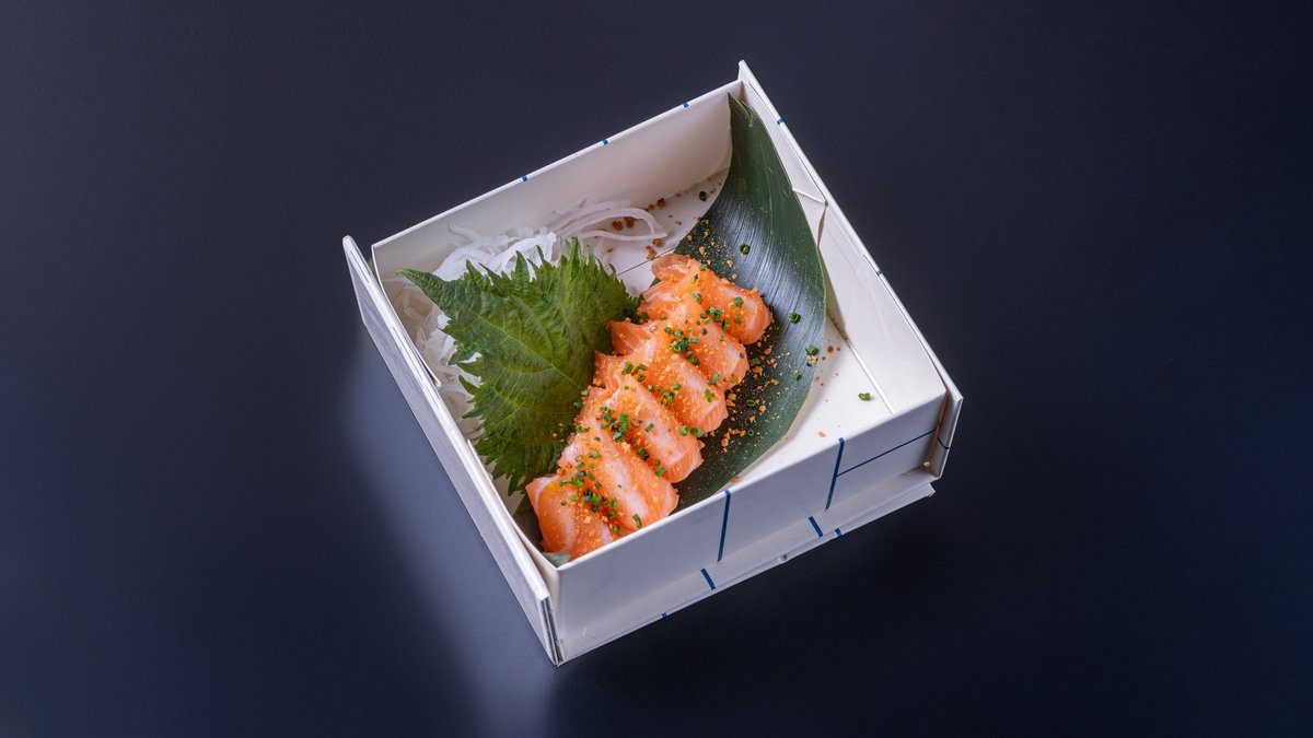 Yuzu Miso-dressing, tynne skiver laks & gressløk.