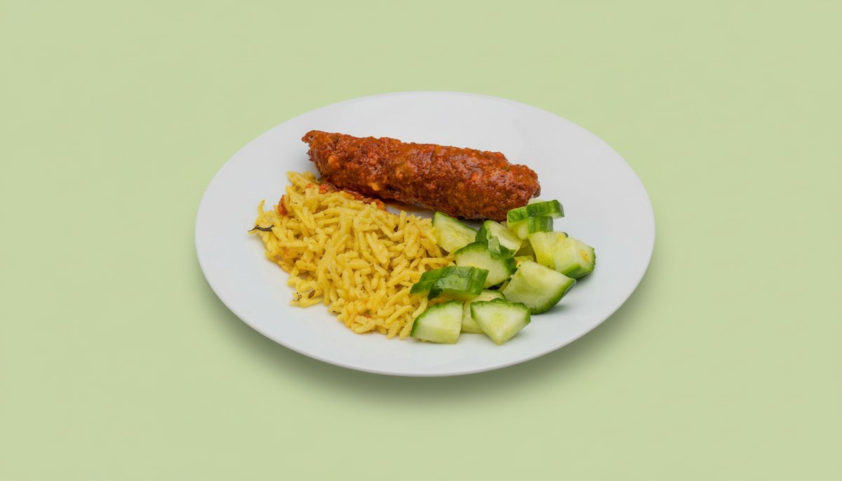 Finhakket oksekjøtt grillet med løk, koriander og ingefær. Serveres med naan.