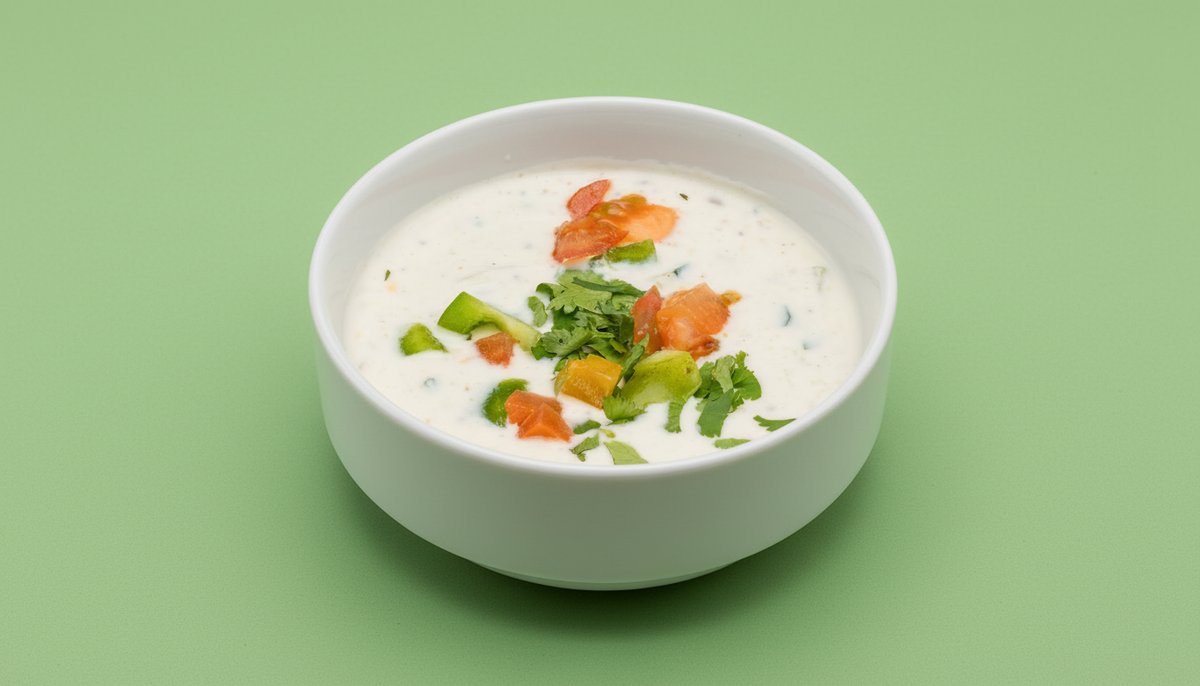 Grønnsaker med ris, purreløk, cashewnøtter og rosiner. Serveres med raita.