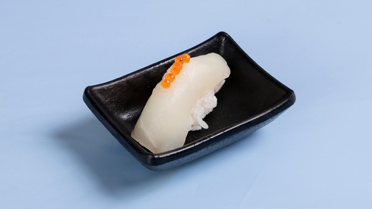 16 biter. 4 laks, 1 tunfisk, 1 kveite, 1 scampi, 1 kamskjell og 8 tempura maki med avokado og sesamfrø.