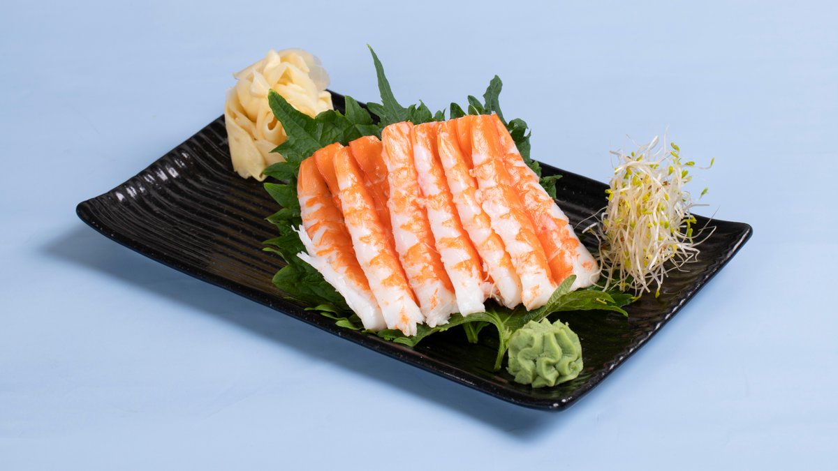 13 biter. fritert innbakt soft crab med avokado, Agurk, chilimajones og sesamfrø.