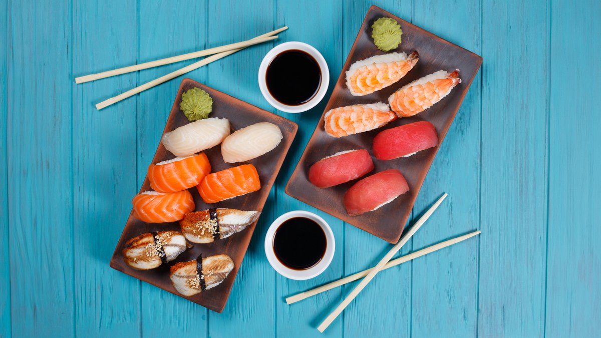 Sushi Mix (40 biter) 6 laks sashimi, 6 laks nigiri, 8 biter maki med laks og avocado, 12 biter futo maki scampi med avokado, chilimayones og teriyaki, 8 biter crunchy laks med avokado, chilimayones og teriyaki sause og purreløk på toppen.