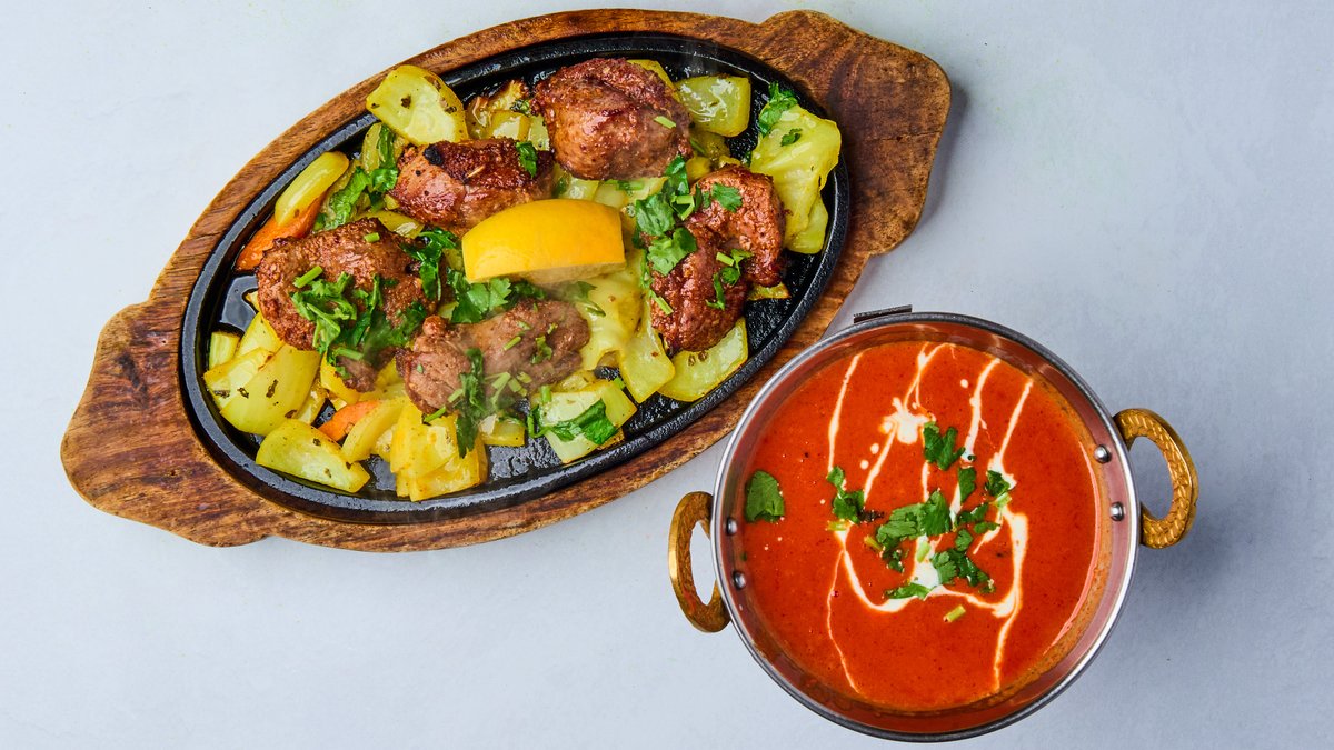 Utvalgte tandoori marinerte i sennepsolje, yoghurt og gurkemeie, biter av kylling, biff, lam og konge reker. Grillet i tandoor.