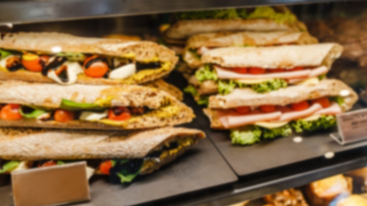 Bensinstasjon med storkiosk, med matavdeling, sjokolade, drikke og andre kioskvarer.