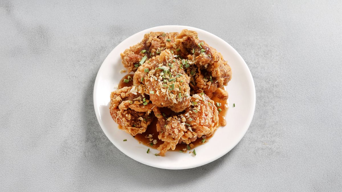 Crispy og saftig frittert lårfillet, penslet med The K-Chicken`s hjemmelagede soyabaserte hvitløksaus.