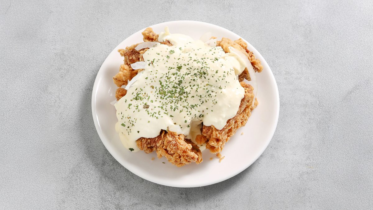 Crispy og saftig frittert lårfillet med The K-Chicken`s hjemmelagede kremet saus og tynnskivet løk. Serveres med ris og salat.