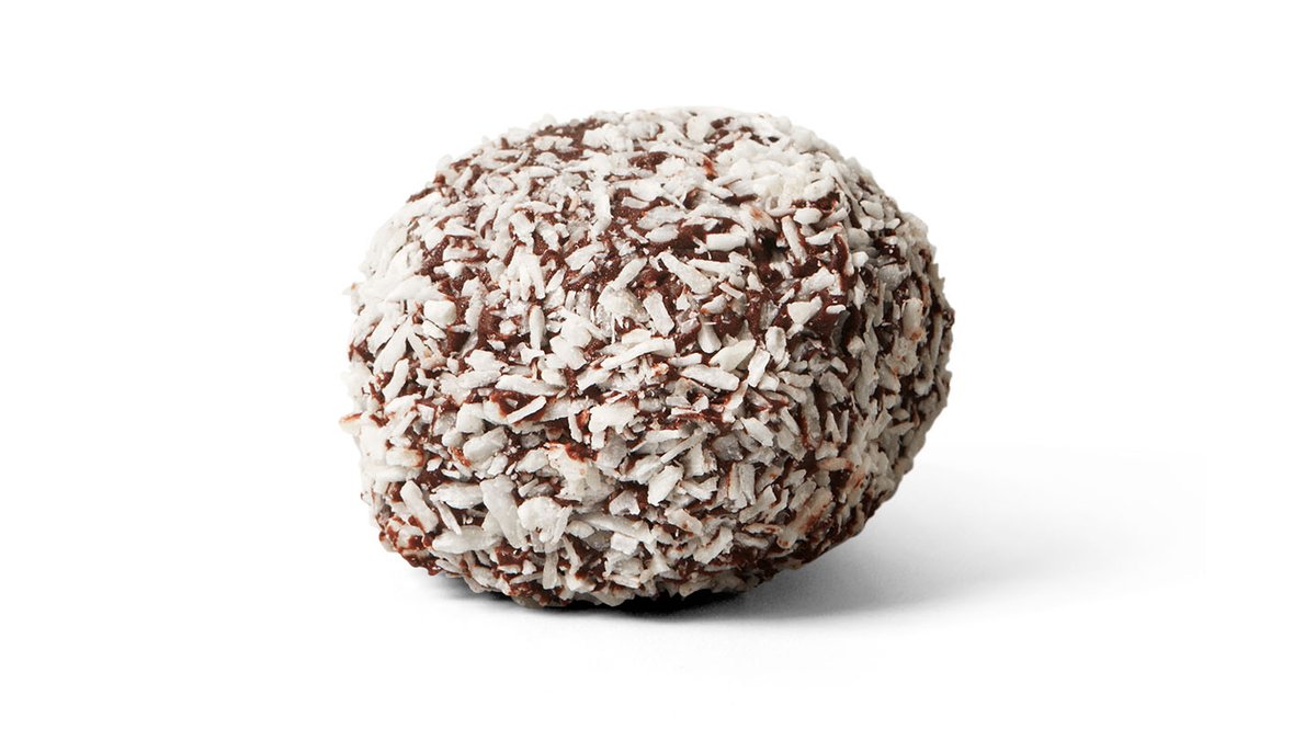 Vegansk sjokoladebolle med kaffesmak, rullet i kokos.