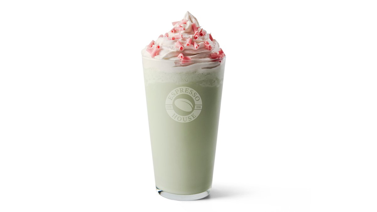 En islatte smaksatt med kanelsirup. Tilgjengelig som vegansk med plantebasert alternativ.