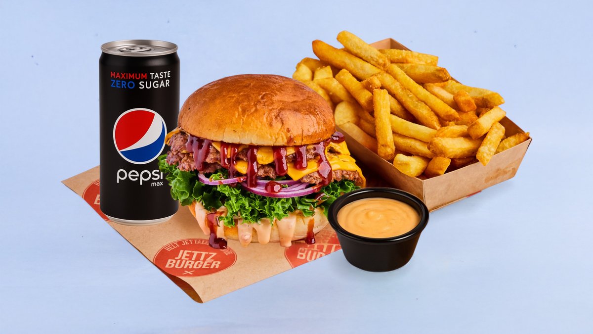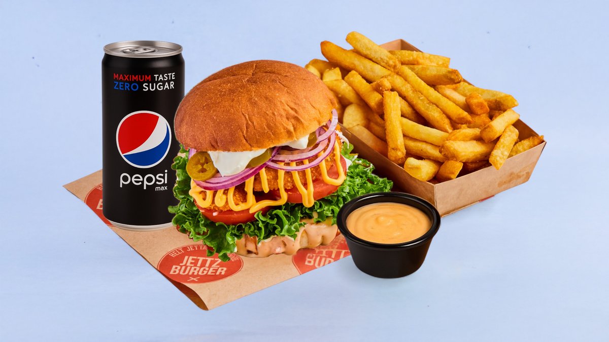 Ferskt 100% norsk storfekjøtt, vår egne chilimayo, salat, tomat, rød løk og syltede agurker. Serveres med fries valgri brus og dip saus.