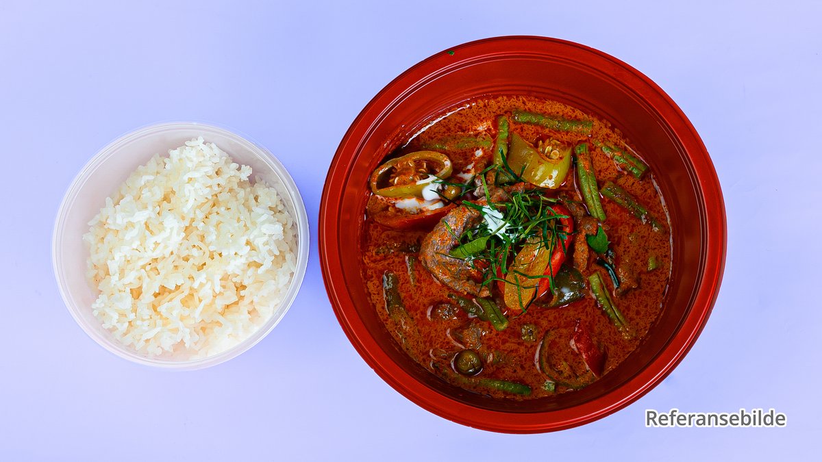 Biff i kokosmelk med rød chilipaste.