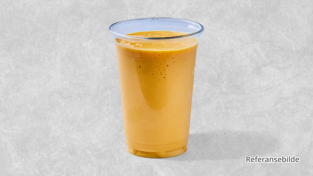 En kremet yoghurtdrikk med smak av mango.