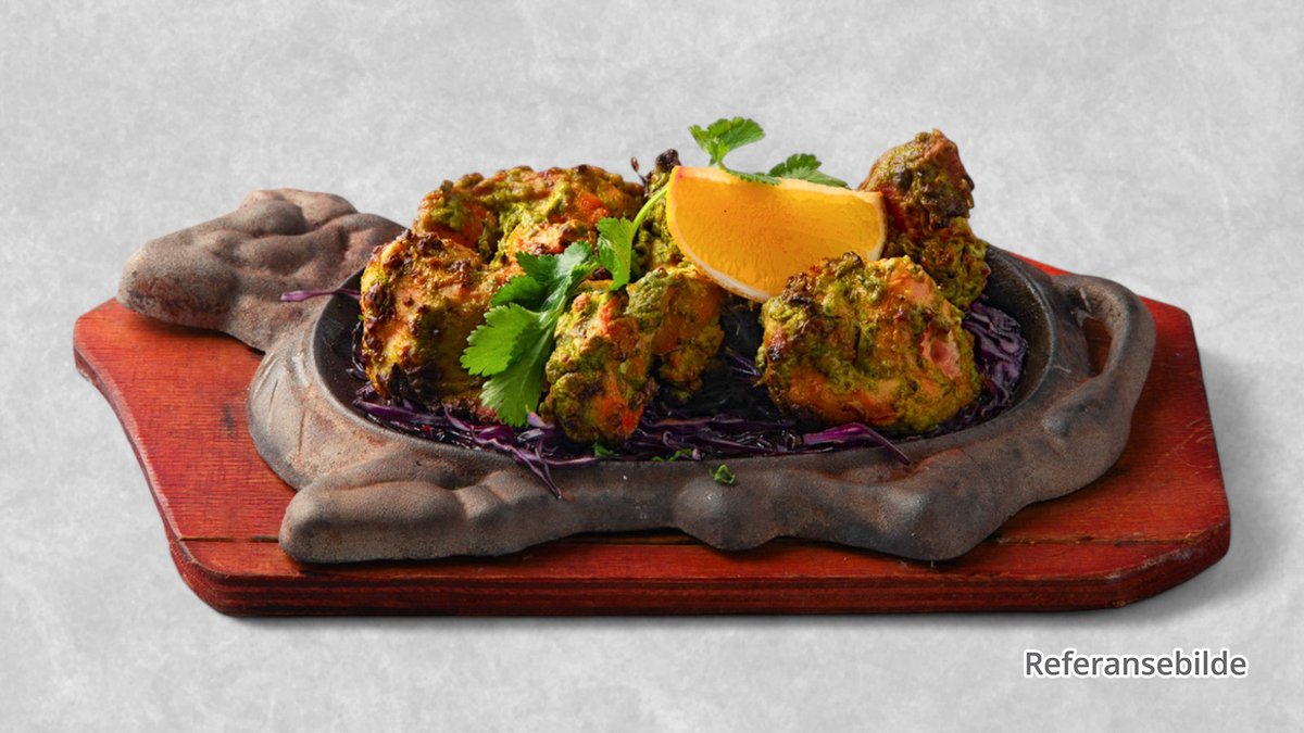 Kylling marinert i en blanding av yoghurt og ulike indiske krydder. Grillet i tandooriovn ovn. Serveres med ris og tandoorisaus.