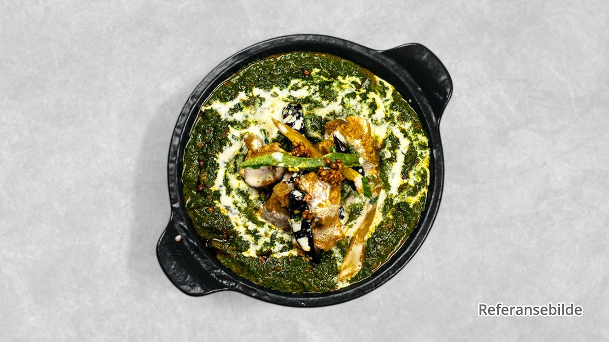 Kyllingfilet tilberedt med spinat, indiske krydder, hvitløk og urter.