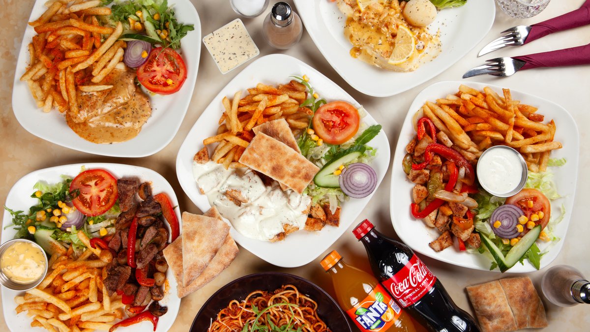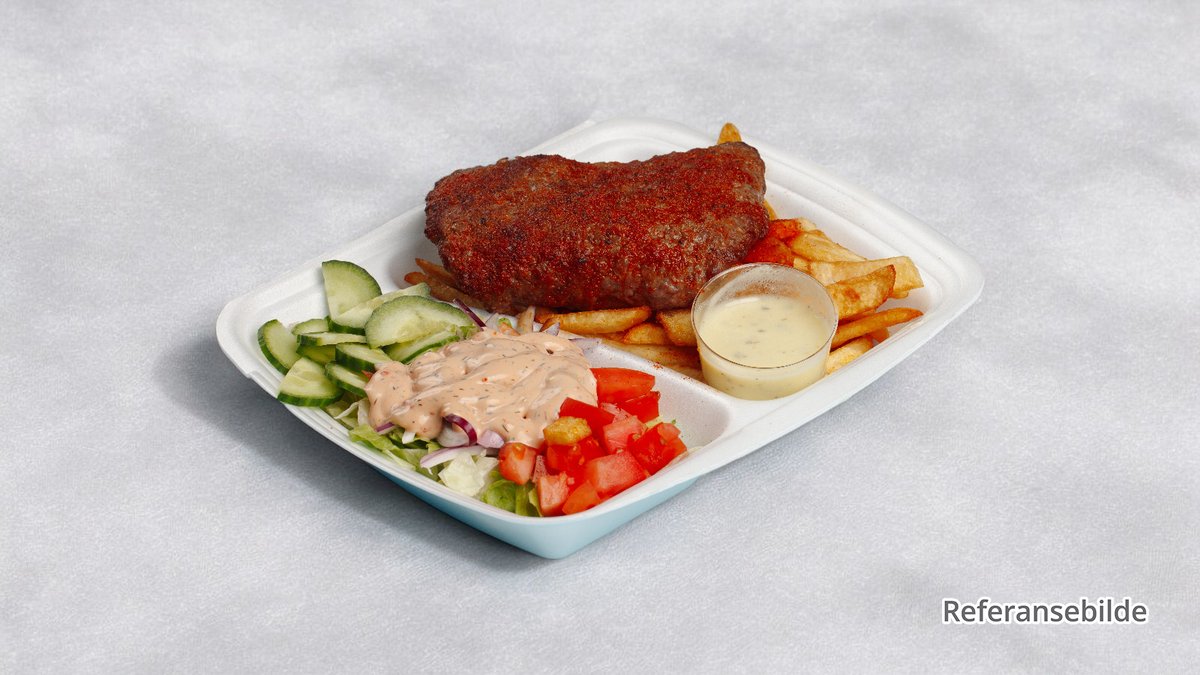 Tyrkisk rett med biff, løk, paprika, tomat og ost. Serveres med salat og pommes frites.