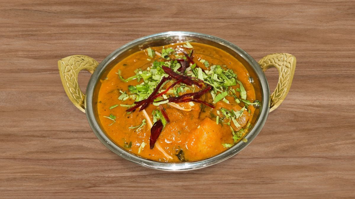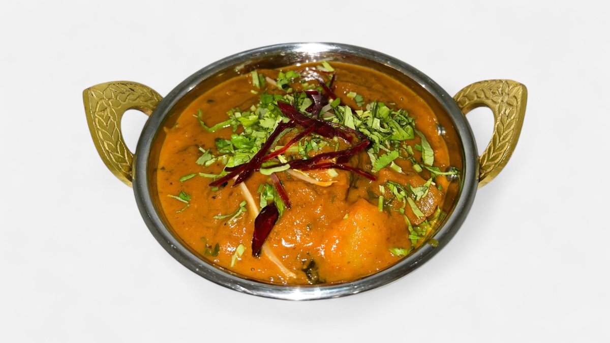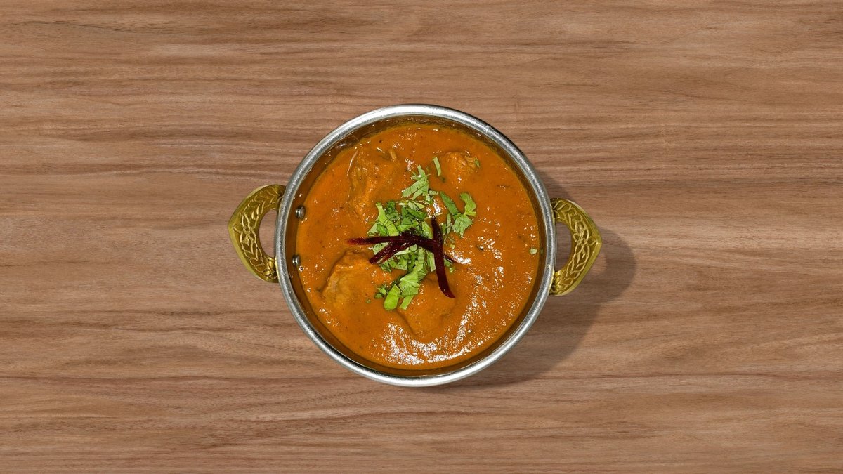 Saftige grillede kyllingstykker putret i en dristig, aromatisk karri laget med løk, tomater, ingefær, hvitløk og ferskmalte krydder.
