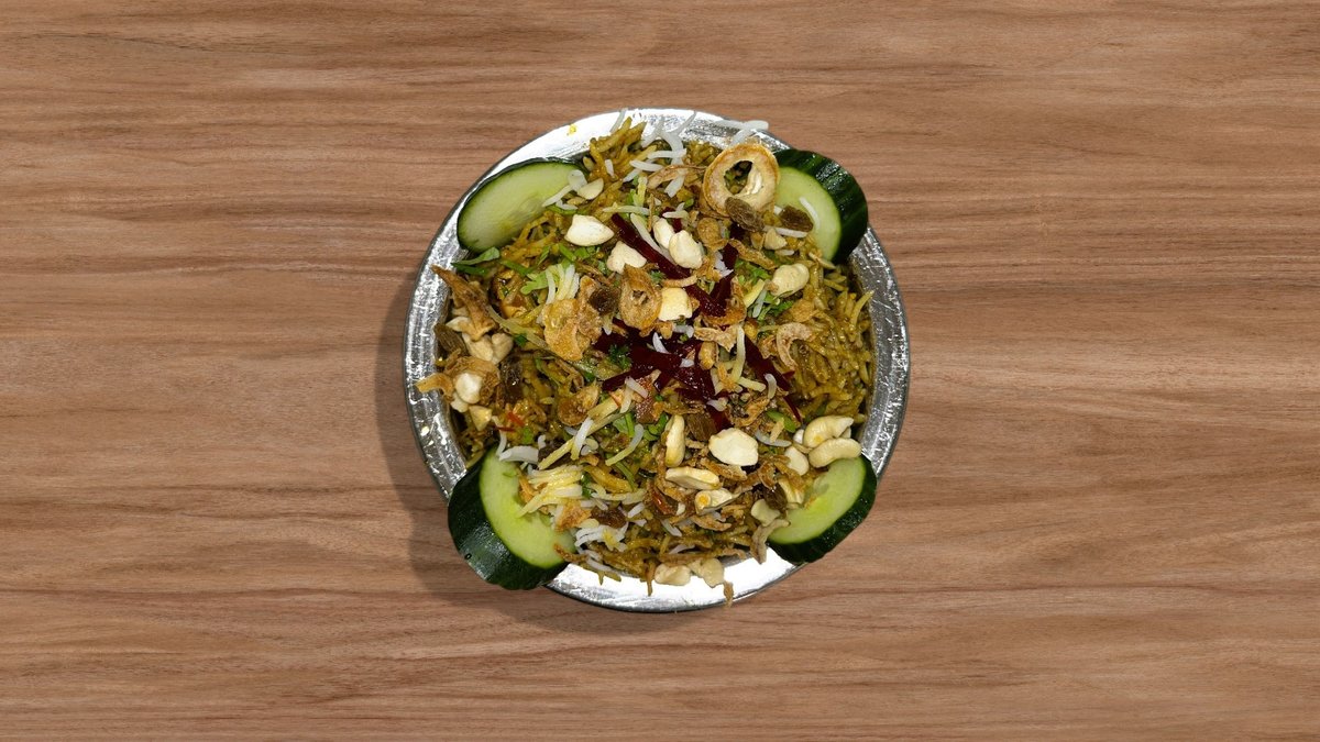 En smaksrik blanding av basmatiris, saftig kylling og aromatiske krydder som safran, spisskummen og friske urter.
