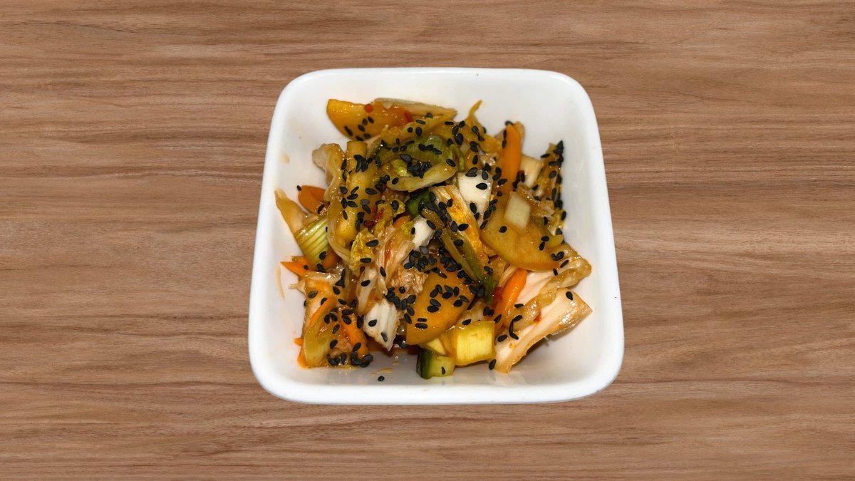 Tradisjonell hjemmelaget kimchi, laget med fermenterte koreanske grønnsaker og smaksatt med velsmakende gochujang.