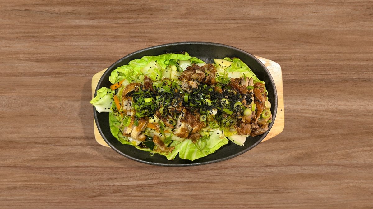 En fargerik blanding av kinakål, zucchini, gulrøtter, vårløk og bønnespirer, stekt i velsmakende teriyakisaus.