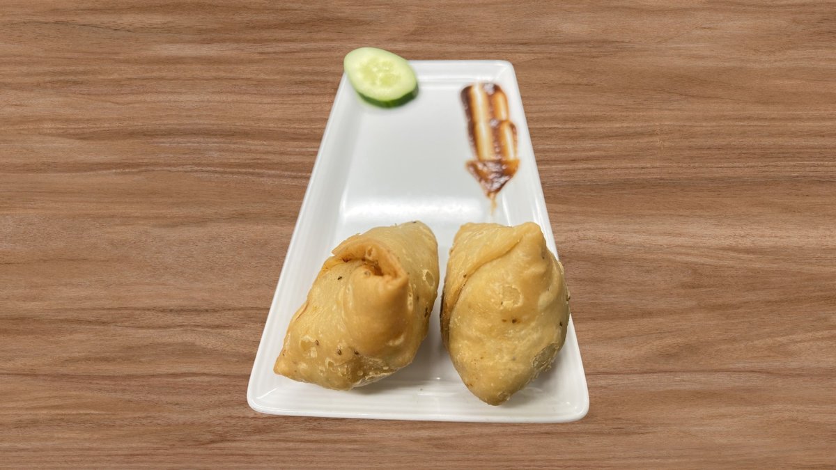 Crispy bakverk fylt med krydrede poteter og erter, frityrstekt til perfeksjon.
