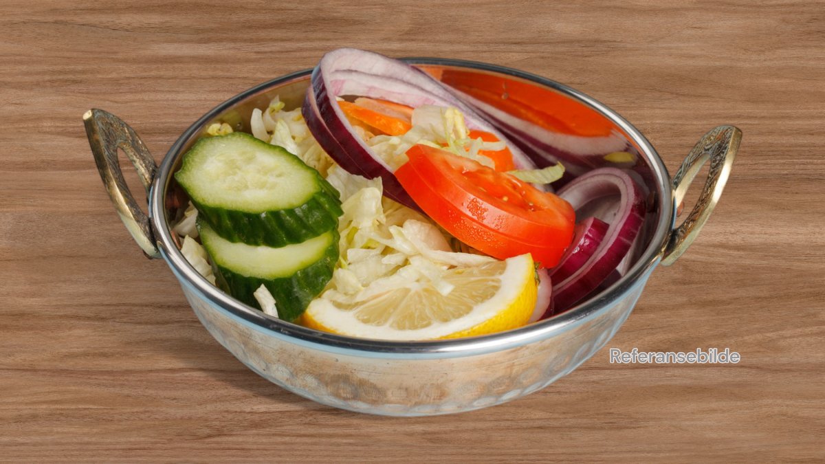 Friske grønnsaker tilberedt i en kremet saus laget med cashewnøtter, løk, tomater og milde krydder.