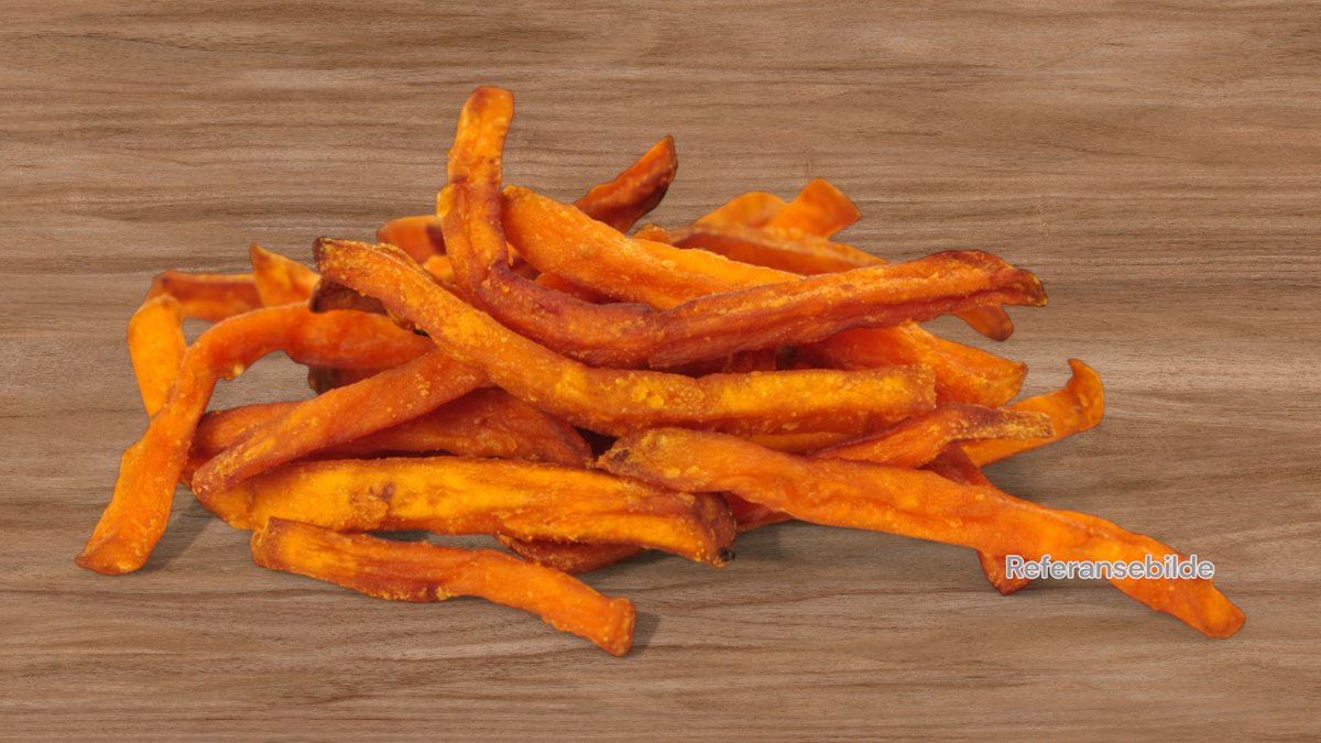 Sprø, gylne søtpotetfries servert med en side av kremet chilimajones.