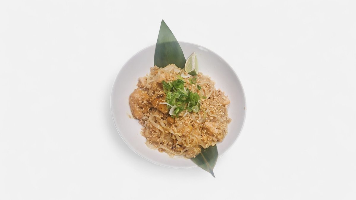 NUDLER - Thailandsk rett. Stekte risnudler med egg, peanøtter og bønnespirer. Velg mellom kylling eller tofu.