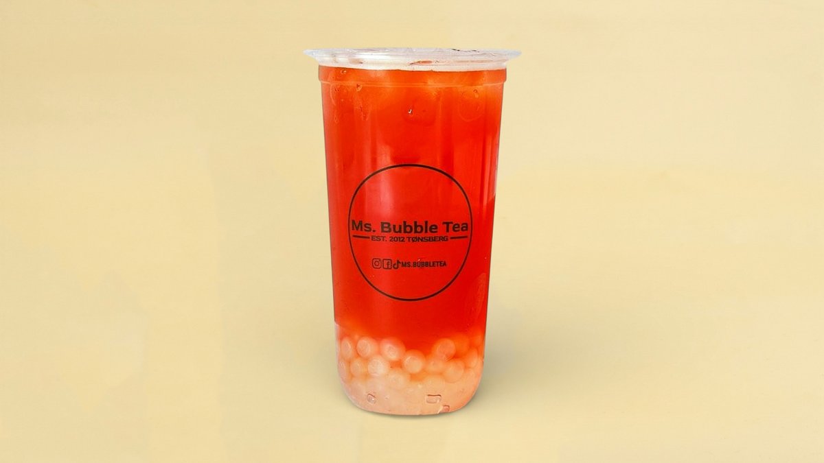 🩸 Bloody Murder En søt vanilje milk tea med jordbærsirup som ser rett ut av en skrekkfilm – men smaker himmelsk! 🍓💀