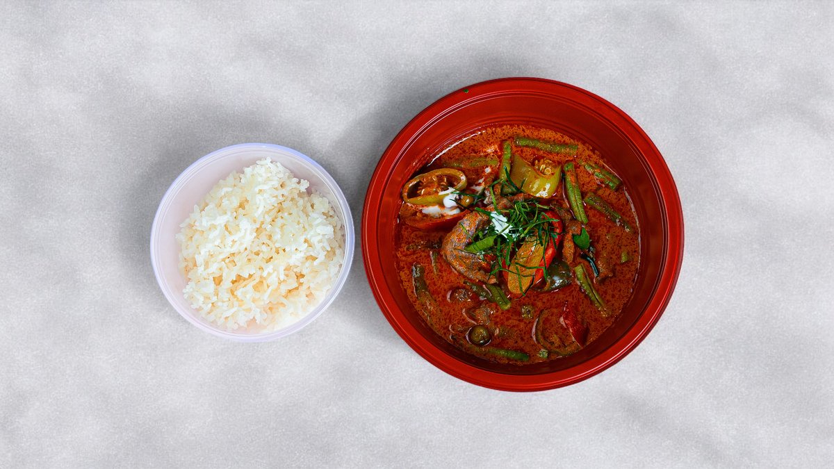 En klassisk thai-inspirert rett m/ en saus av kokosmelk & red curry, krydret m/ ingefær, hvitløk & frisk koriander.