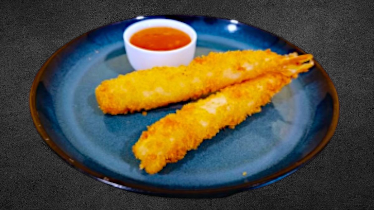 2 stk sprø, frityrstekte kongereker i gyllen tempura deig, servert med søt chilisaus.