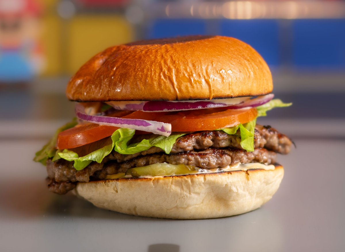 Salat, tomat, rødløk, sylteagurk, burgr mayo. Velg antall patty.