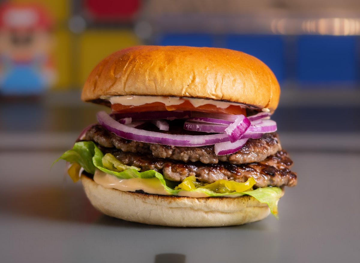 Sprøstekt løk, ketchup, sylteagurk, hvitløks mayo, cheddar. Velg antall patty.
