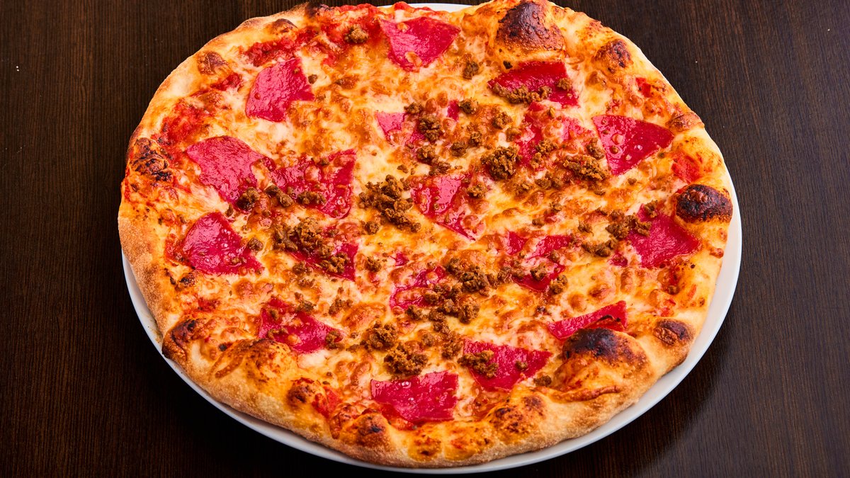 Ost, kjøttdeig, skinke og pepperoni Allergener: ost, melk, soya og hvete