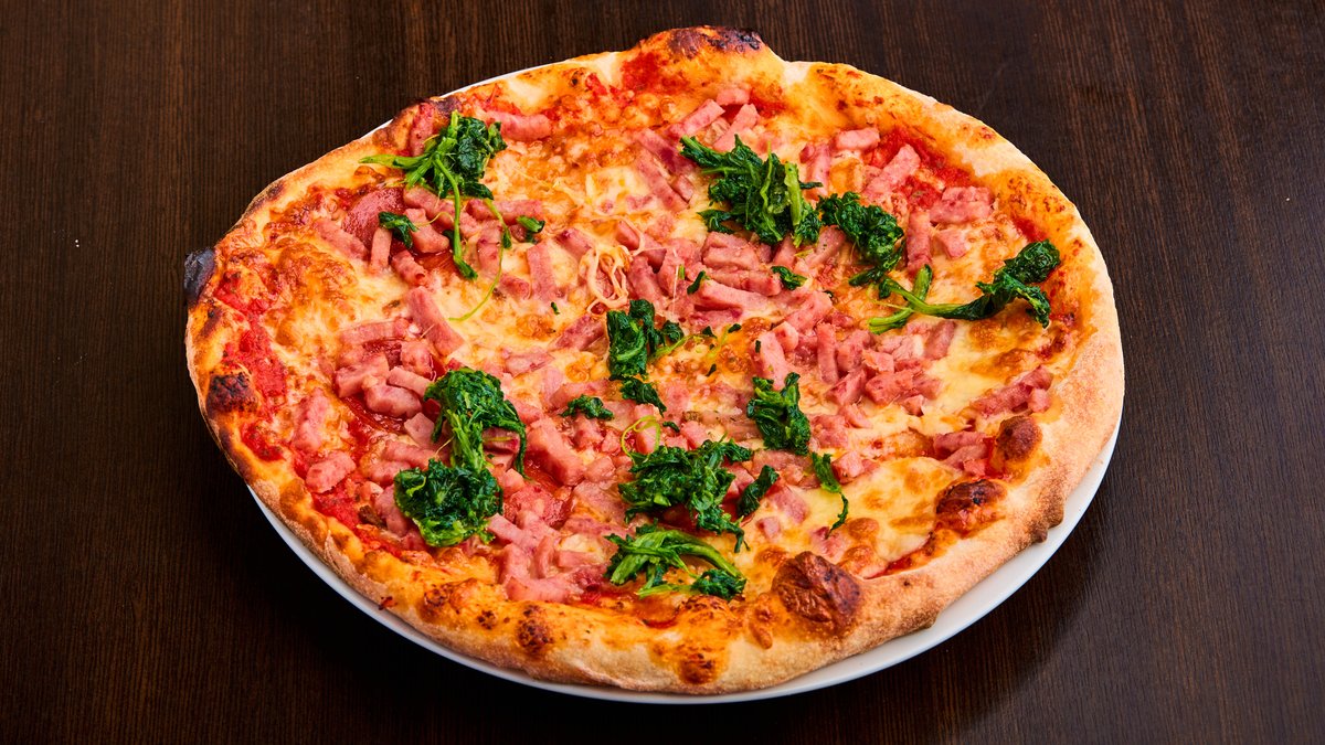 Ost, skinke, spinat, gorgonzola og artisjokk Allergener: ost, melk, soya og hvete