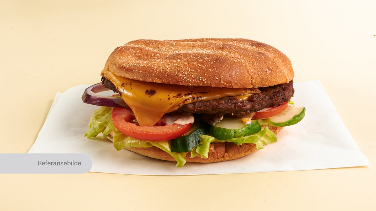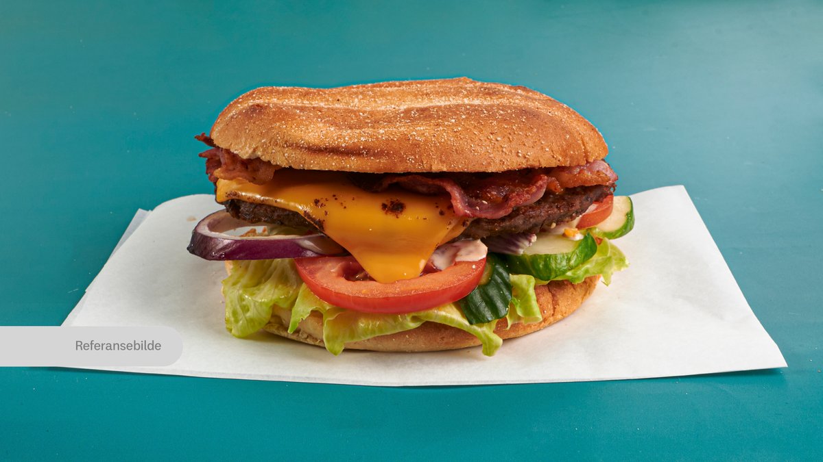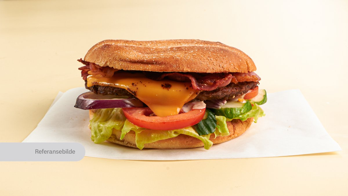 Hamburger med ost, bacon, kinakål, sylteagurk, tomat og vår hjemmelaget dressing. Allergener: Hvete, Melk