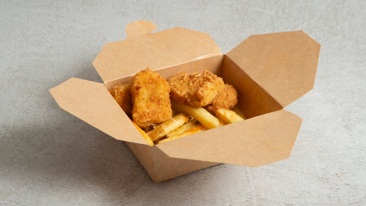 Friterte gylne og sprø panerte nuggets av kylling. Inkluderer 0,5 l drikke og medium fries.