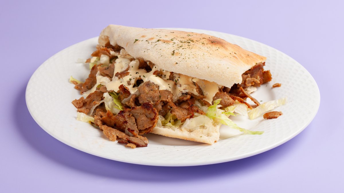 Rull med kebabkjøtt og marinert kyllingkjøtt servert i hjemmelaget brød.