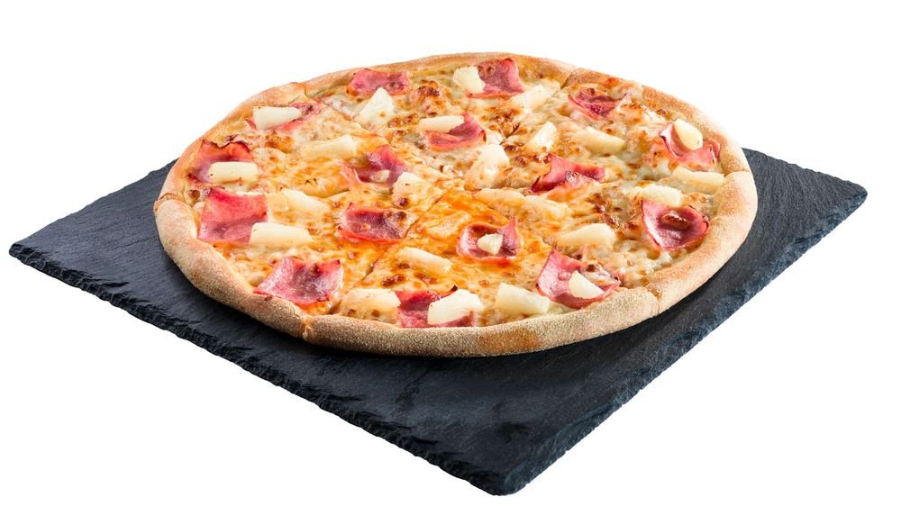 Pizza z kraterem pełnym gorącego, serowego sosu cheddar oraz sosem pomidorowym, mozzarellą, szynką i ananasem. Zawiera niezbędną do zachowania kształtu, niejadalną, aluminiową formę.