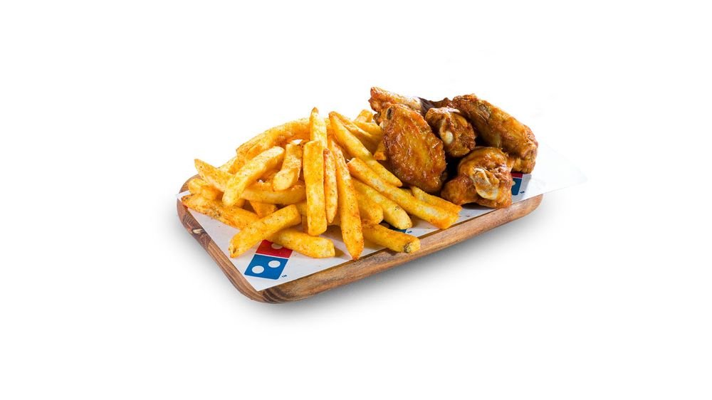 Zestaw 6 pieczonych skrzydełek kurczaka z frytkami (190 g)