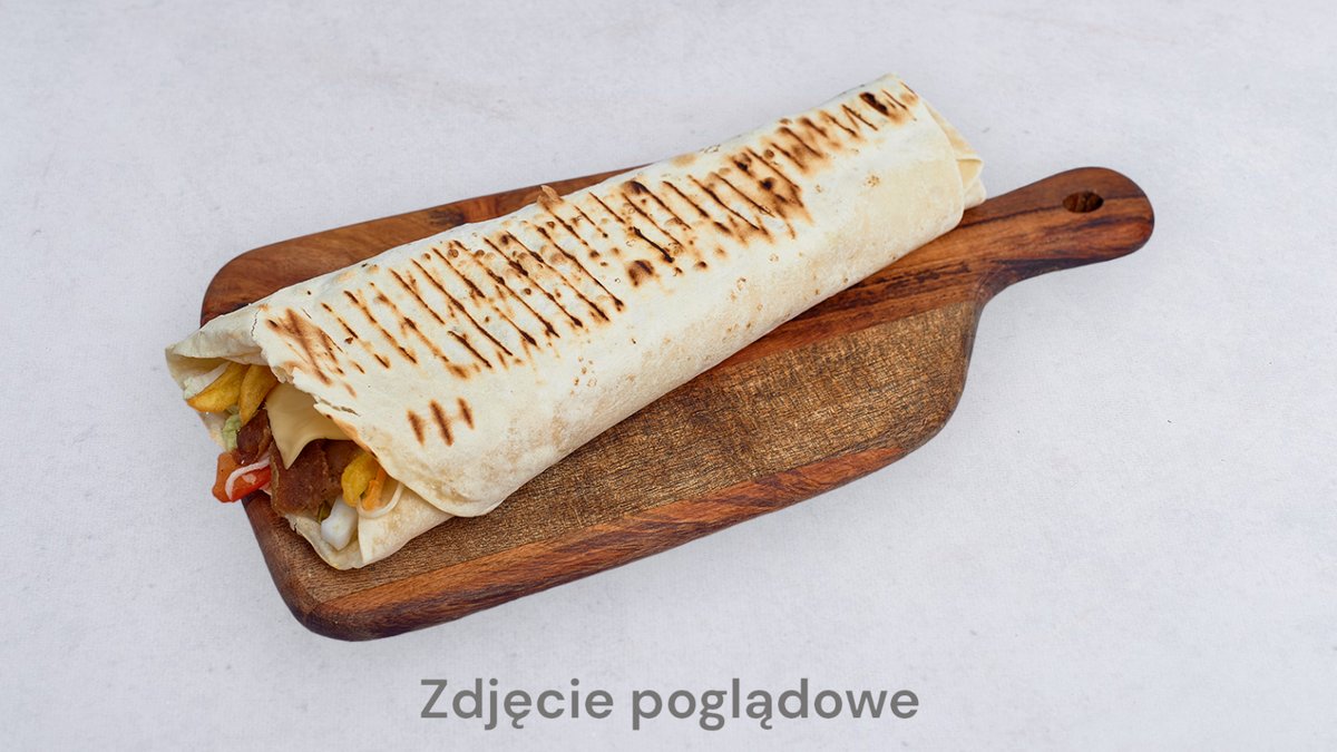 Sałata lodowa, mięso z kurczaka, ogórek, pomidor, sos