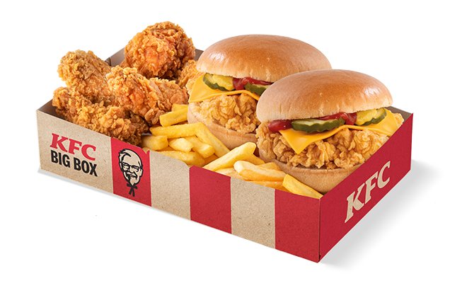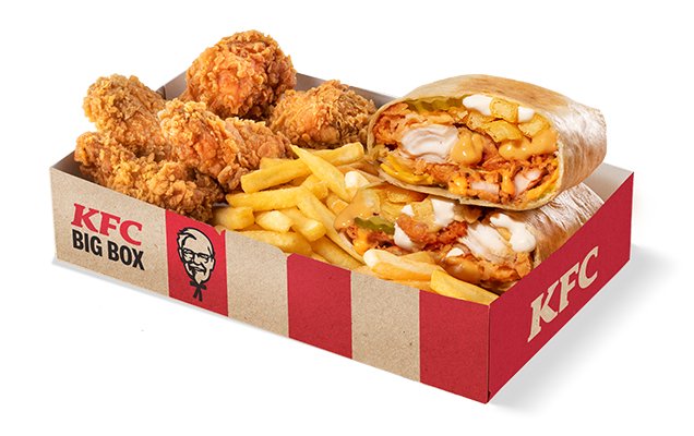 Chrupiąca tortilla zapiekana w środku z: dużym, soczystym kawałkiem Grandera skropiony orzeźwiającym sosem limonkowym, do tego kremowy majonez i sos Kentucky Gold, duże frytki, rozpływający się ser Cheddar i aromatyczny boczkek. Całość dopełniają wyraziste pikle i prażona cebula (min. 350 g). W boxie z 5 Hot Wings (min. 135 g) oraz dużymi frytkami (min. 115 g).