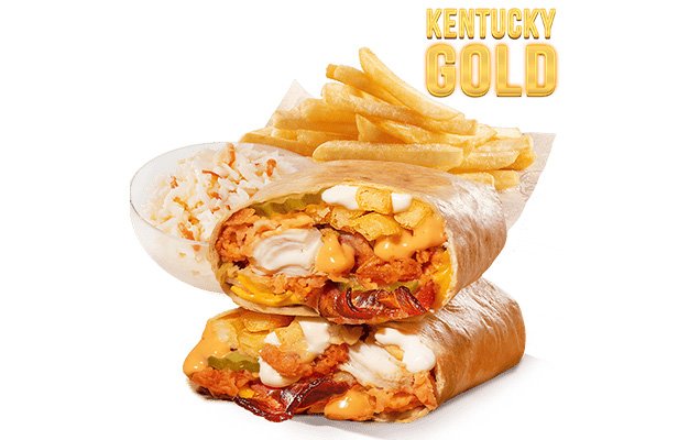 Chrupiąca tortilla zapiekana w środku z: dużym, soczystym kawałkiem Grandera skropiony orzeźwiającym sosem limonkowym, do tego kremowy majonez i sos Kentucky Gold, duże frytki, rozpływający się ser Cheddar i aromatyczny boczkek. Całość dopełniają wyraziste pikle i prażona cebula (min. 350 g). W zestawie z dużymi frytkami (min. 115 g) oraz sałatką Coleslaw lub napojem.