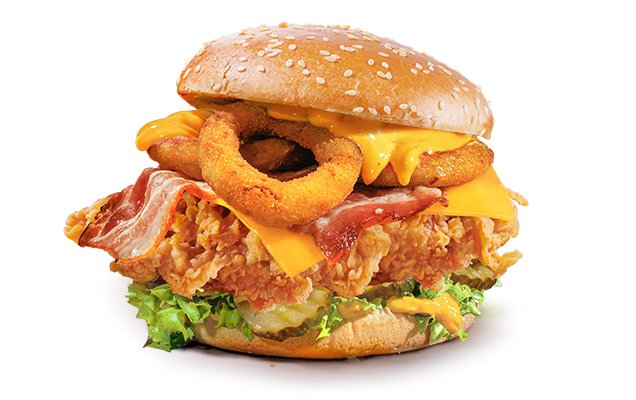 Chrupiąca tortilla zapiekana w środku z: dużym, soczystym kawałkiem Grandera skropiony orzeźwiającym sosem limonkowym, do tego kremowy majonez i sos Kentucky Gold, duże frytki, rozpływający się ser Cheddar i aromatyczny boczek. Całość dopełniają wyraziste pikle i prażona cebula (min. 350 g/szt).