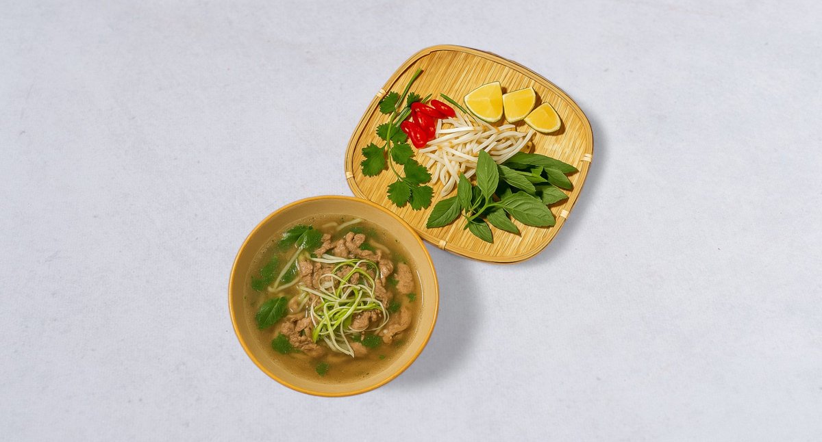 Głęboki, aromatyczny bulion z delikatnym makaronem ryżowym i świeżymi ziołami. Klasyka wietnamskiej kuchni