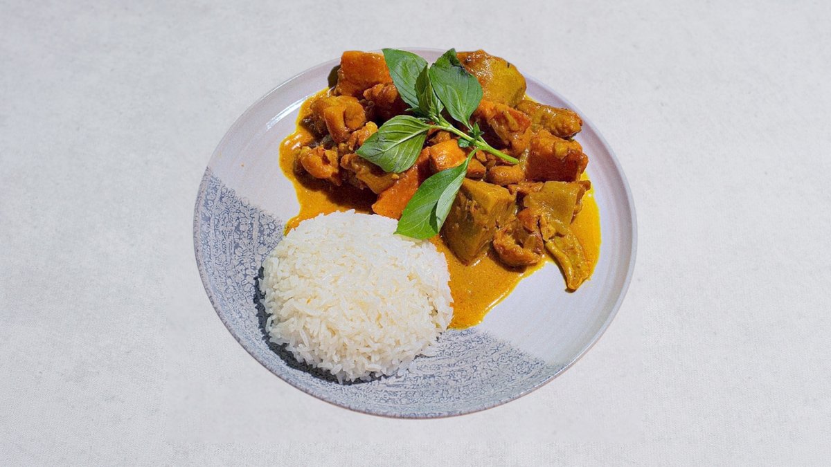 Aromatyczne, kremowe curry z delikatnymi kawałkami kurczaka, duszonymi w mleczku kokosowym z dodatkiem trawy cytrynowej.
