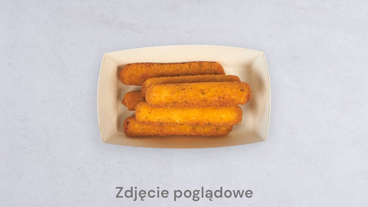 Z polędwiczkami z kurczaka, frytkami, sosem serowym, serem gouda, serem cheddar i camembertem