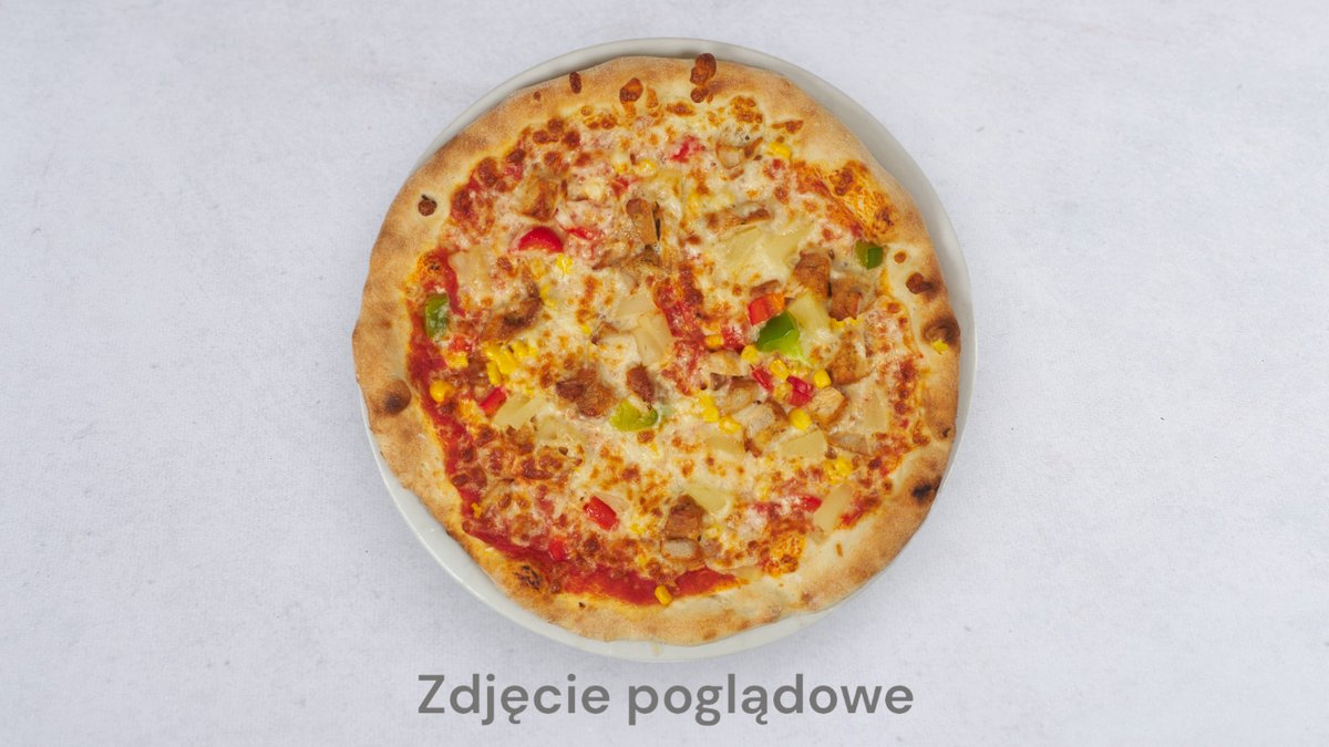 Z kurczakiem, pieczarkami, kukurydzą i papryką