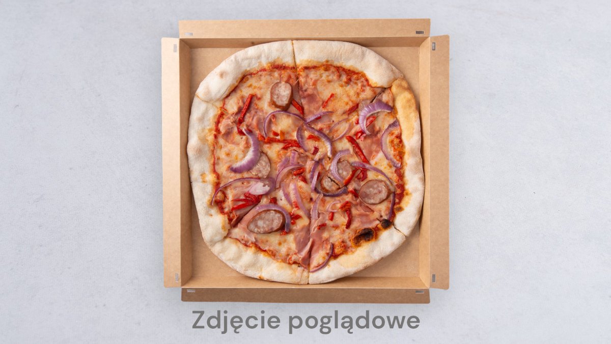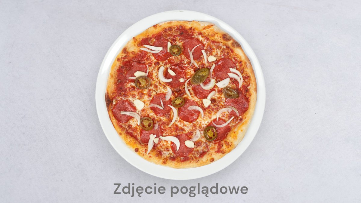 Z kiełbasą pepperoni, cebulą i ostrą papryką
