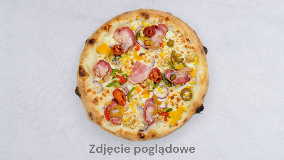 Z szynką, pieczarkami, oliwkami, papryką, kukurydzą