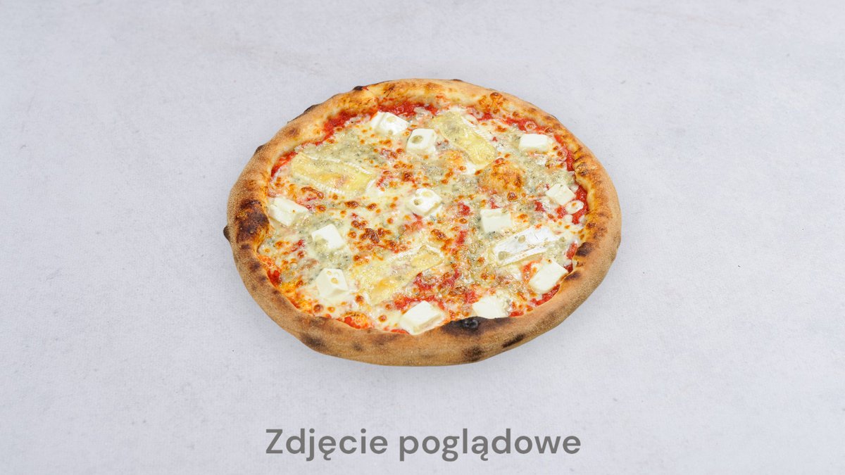 Z serem pleśniowym, serem mozzarella, serem wędzonym i sosem serowo-śmietanowym